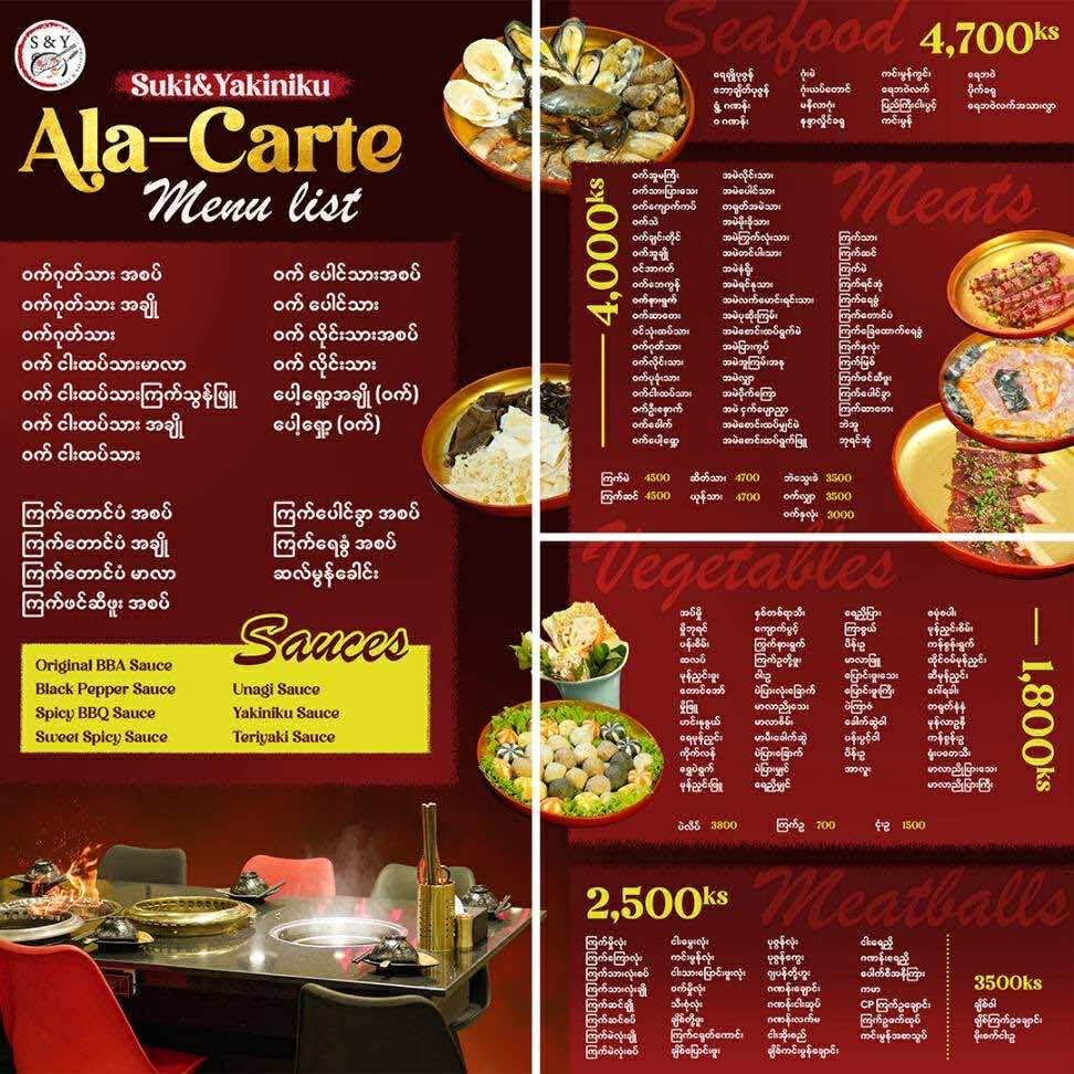 Special Price of Alacarte Menu - 30000 ks including tax